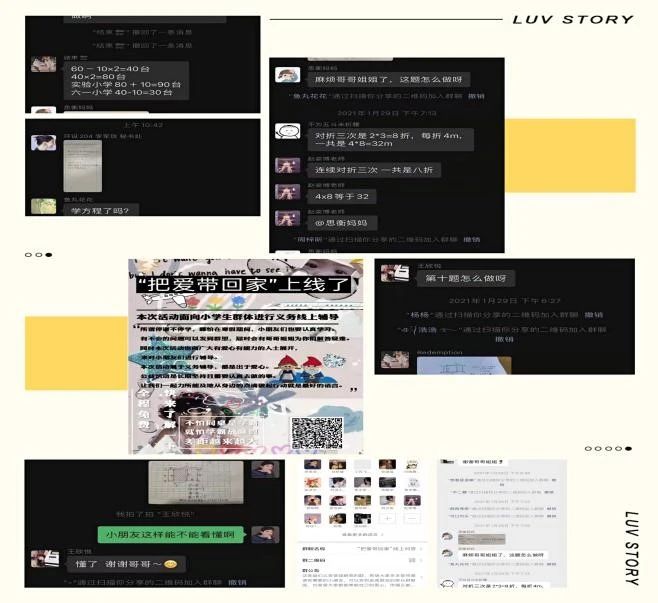活动一经发布,同学们积极响应,踊跃参与,现已有18名同学参与活动,与来自13个市地的53名留守儿童建立联系,为孩子们提供学业辅导、心理疏导、疫情防控知识讲解等多方面的帮助。建立“一对一”爱心帮扶模式,立足实际,精准、精细、精心开展“隔空不隔爱”线上云帮扶活动。同时,志愿者也与留守儿童家长通过微信、QQ取得联系,共同关注留守儿童的需求和愿望,努力成为他们心中的“知心人”。