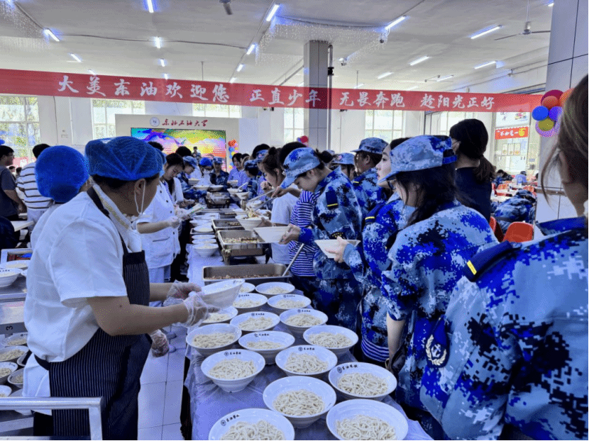 一食堂二楼,早早地就弥漫着阵阵面香。工作人员们忙碌地准备着,一碗碗热气腾腾的面条,仿佛在诉说着学校对新生们的热烈欢迎。面条,不仅是一种食物,更是一种情感的纽带,连接着学校与新生们的心。