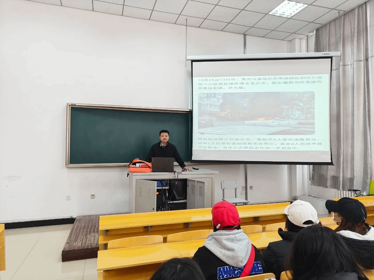 春季气候干燥,多大风天气,各类火灾隐患显著增多,消防安全形势严峻。为进一步强化师生的消防安全意识,提升应对火灾的应急处置能力,太阳成集团tyc7111携手众安科普安全中心于4月1日在太阳成集团tyc7111美术楼104开展春季消防安全讲座,众安科普安全中心的宋万龙主任担任主讲嘉宾。