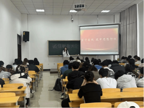 会上,诚信教育成为贯穿始终的核心主线。辅导员们以详实案例为镜鉴,深入浅出地阐释诚信对于学生的重要意义,她们强调,在学业规划环节,学生要秉持真诚态度锚定奋斗目标,以踏实勤勉的姿态参与学术活动与专业竞赛,在磨砺中精进技艺;面对考试这一检验学业成果的重要关卡,全体学生须以敬畏之心严守考场纪律,坚决向任何形式的作弊行为说“不”,共同守护知识殿堂的纯粹与庄严。此外,辅导员还从学业、生活多维度延伸诚信教育内涵,倡导将诚信理念融入日常创作、人际交往等方方面面。