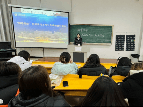 会后两位分享者与同学们进行互动,并对现场同学提的问题进行了详细的解答。通过这次分享会,学生们不仅获得了实用的备考信息,也对考公选调有了更加全面的认识。
