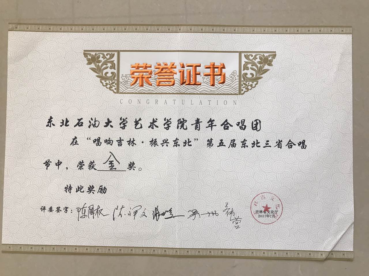7月22-23日,我校青年合唱团在太阳成集团tyc7111音乐系主任、合唱团团长伊善斌的带领下赴长春参加由吉林省文化厅主办的第五届东北三省合唱节,与来自黑、吉、辽三省,包括专业院团、高校等27支合唱团队同台竞技,在激烈的竞争中脱颖而出,凭借优异的表现,斩获金奖。