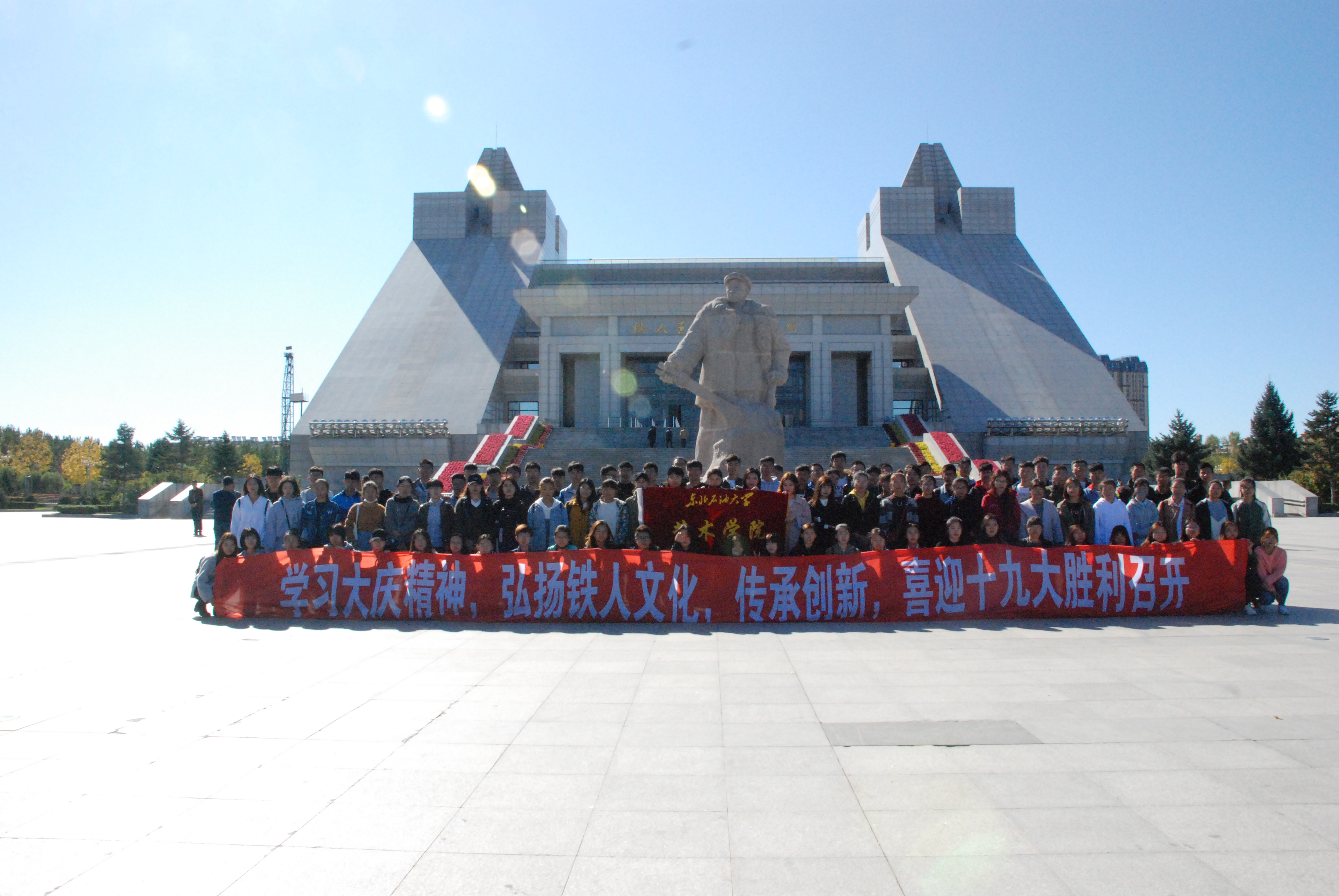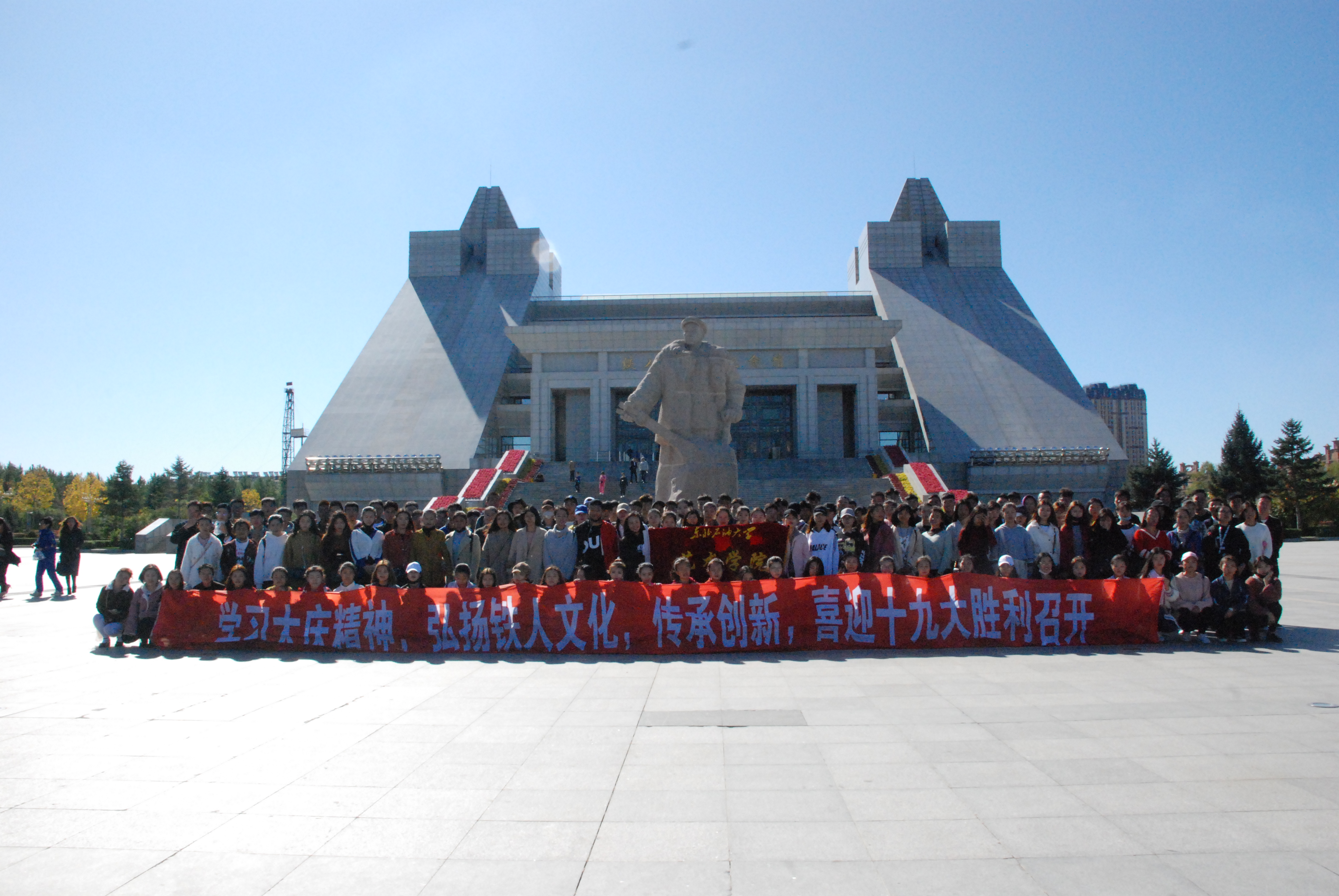 为响应学校向黄大年同志学习,向铁人学习的号召。9月24日,太阳成集团tyc7111党委组织全体党员和2017级新生参观大庆市铁人纪念馆。