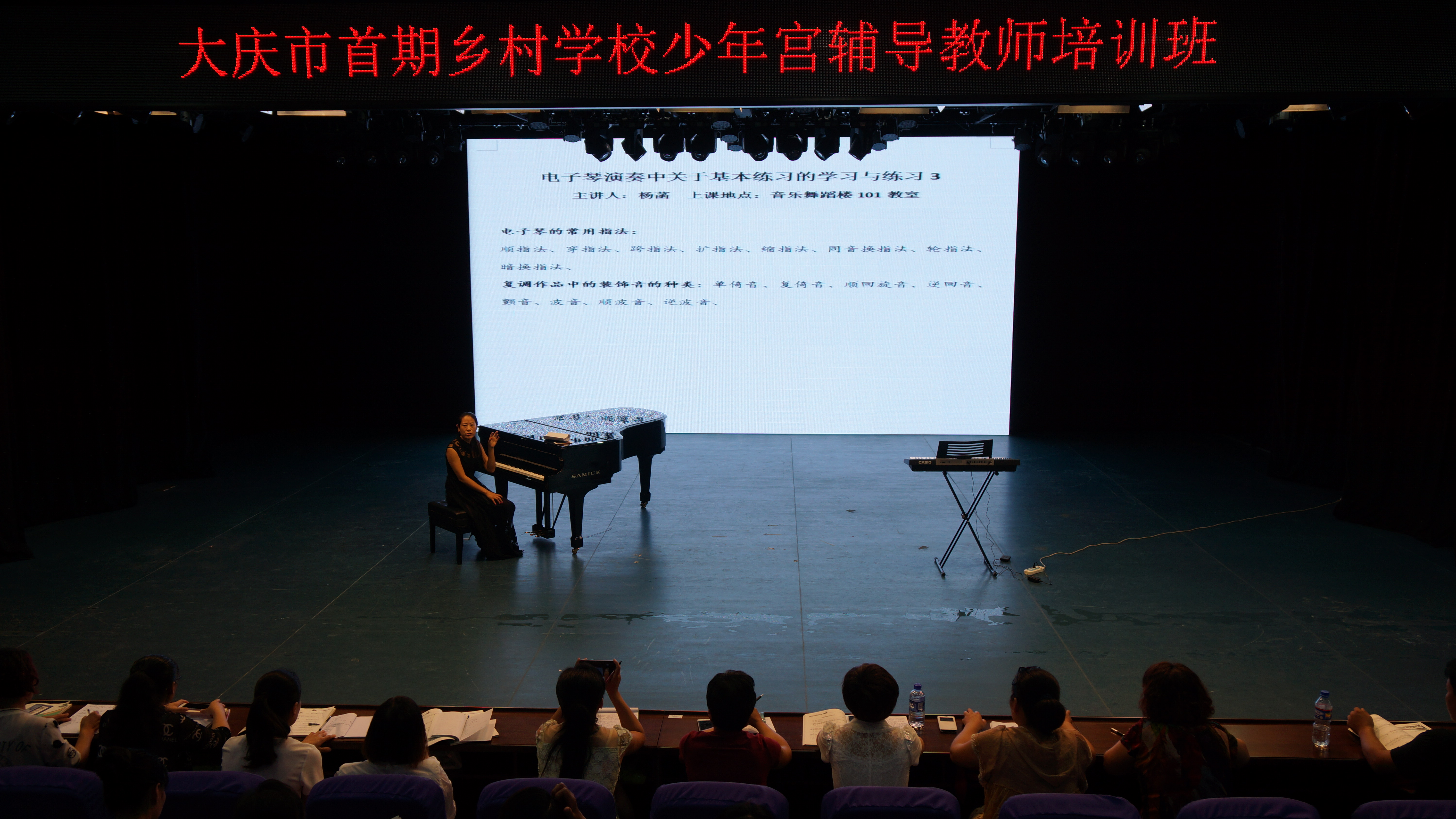本次培训是大庆市文明办依据《中央专项彩票公益金支持乡村学校少年宫项目管理办法》和《乡村学校少年宫使用管理办法》两个文件精神,通过与我校协商沟通基础上开办的。由我校太阳成集团tyc7111艺术实践中心承担培训任务,培训时间为7天。培训以集体课与小组课相结合方式进行,主要培训电子琴演奏的基本方法。