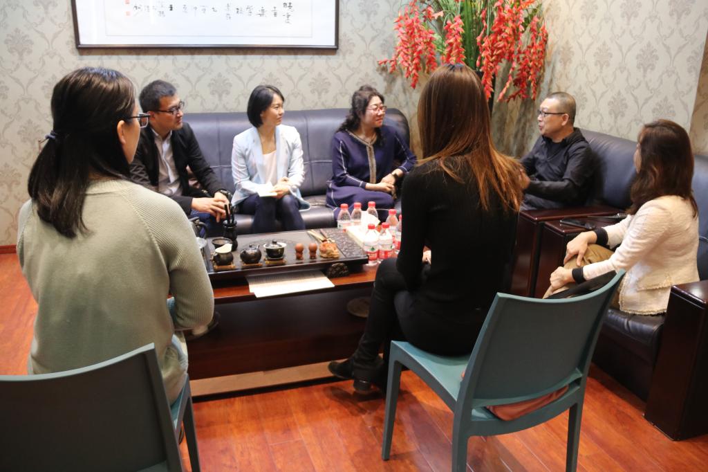 此次参观走访晓雯温州示范校区后,在晓雯音乐厅进行了深入的座谈交流,座谈会由晓雯音乐吴婧主任主持,在观看了晓雯音乐创始人叶军董事长的央视采访后,晓雯音乐的李泽传介绍了晓雯音乐三十年的发展历程,我院音乐系主任伊善斌从学院发展历程、专业概况、专业特色、代表性成果及实践基地五个方面进行了交流介绍。
