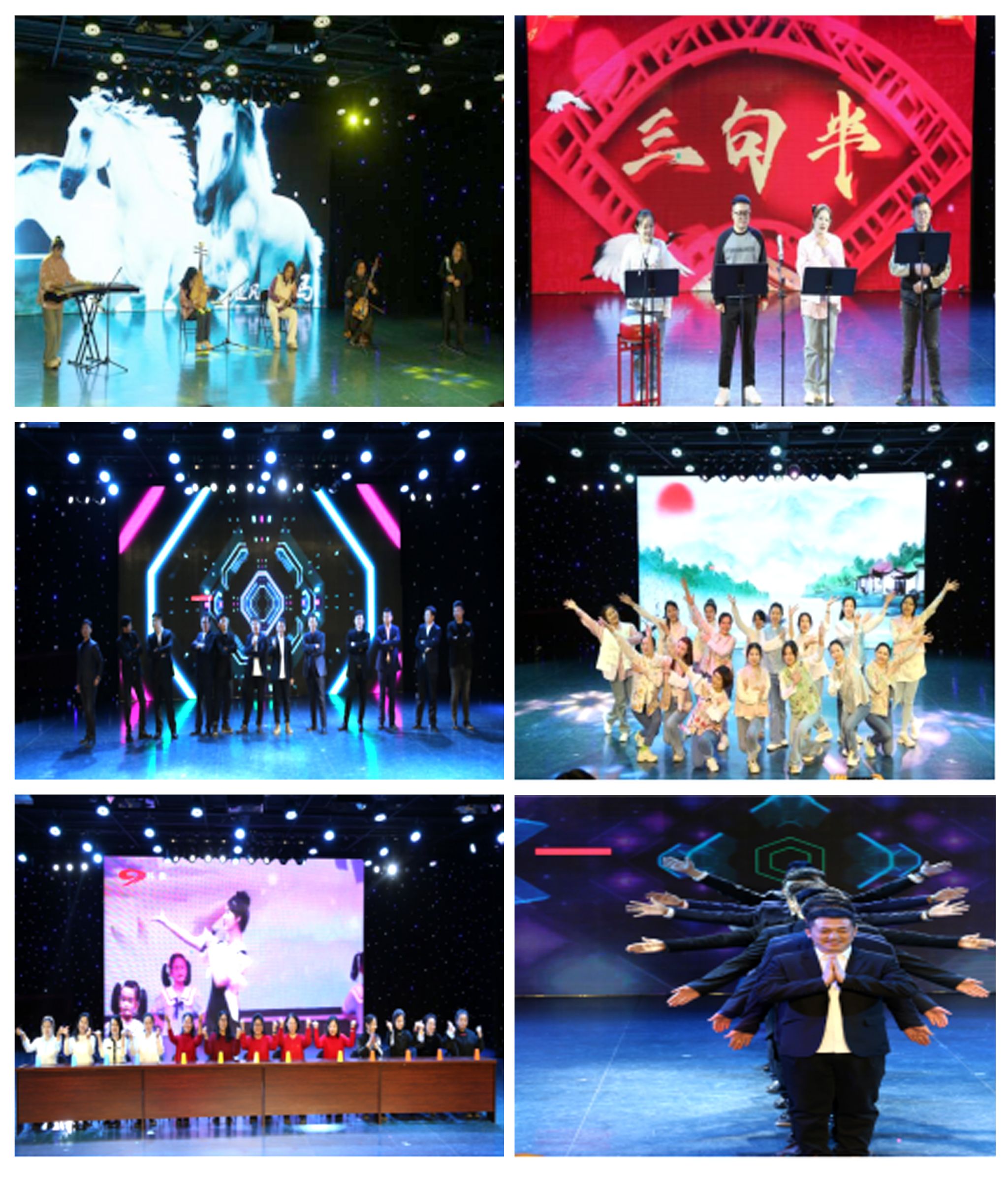 联欢会的表演以曾在中央电视台2022年“风华国乐”中国年新春晚会上演出的新民乐《追风的云青马》拉开序幕。接下来由16位非舞蹈专业的“女团”带来洋溢着青春活力的舞蹈《上春山》。