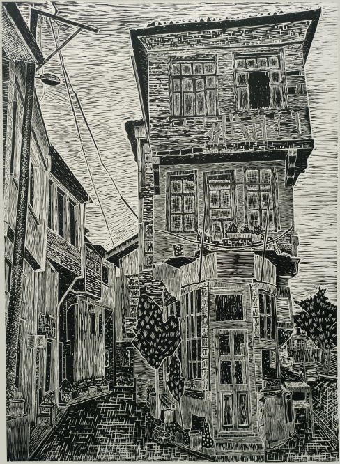 胡梦雯(学生)《光影工业》 套色木刻 入选