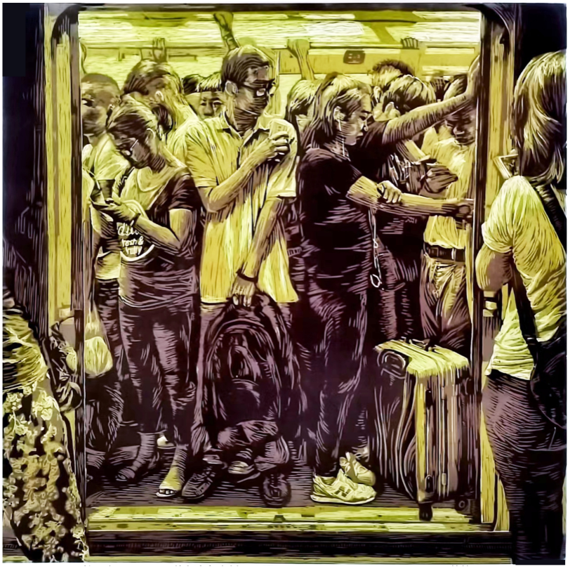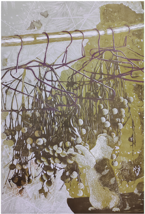 马静怡(学生)《“忙”人》 套色木刻 入选