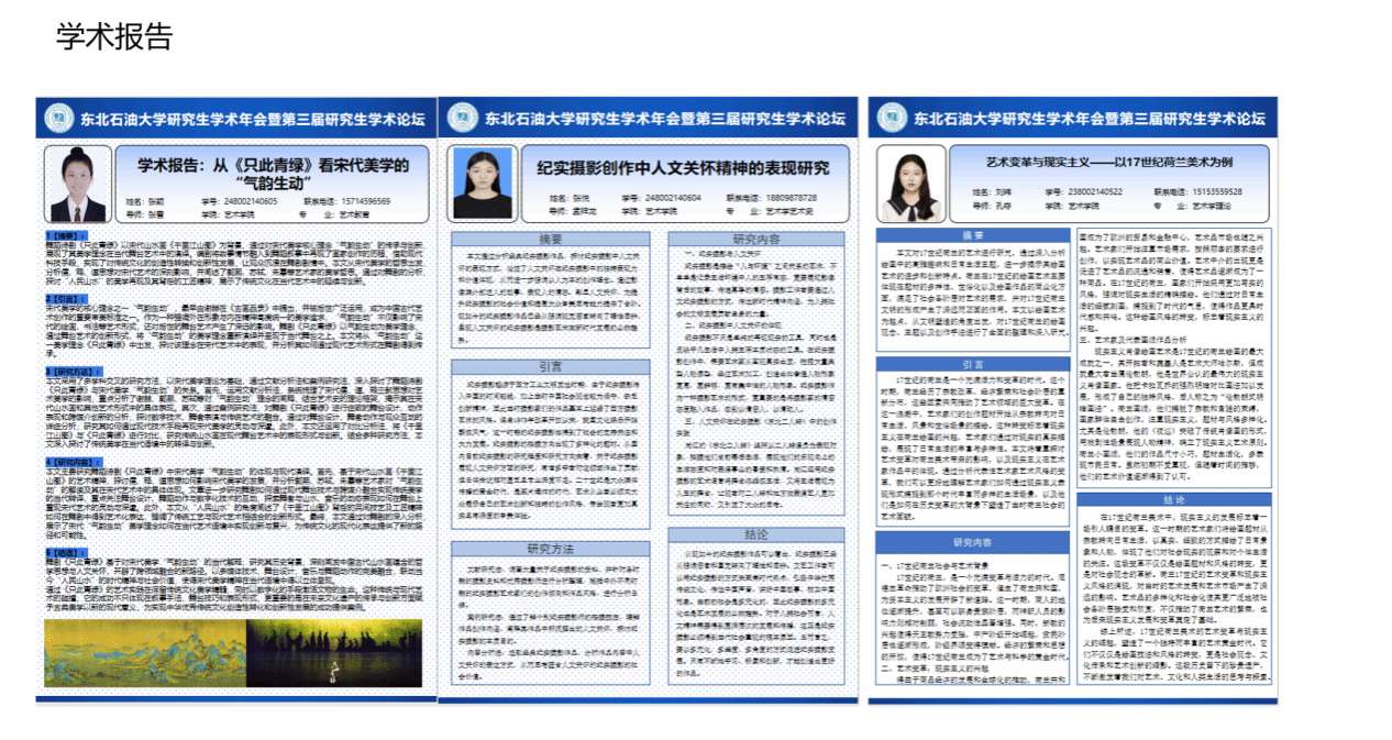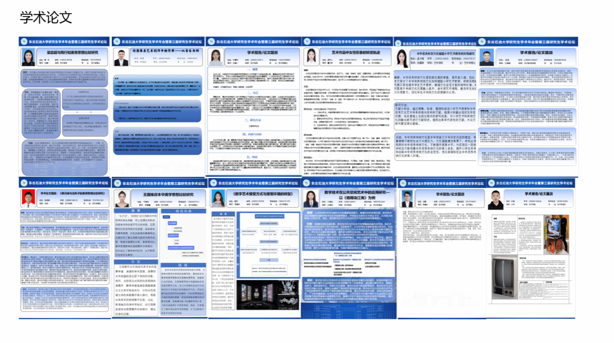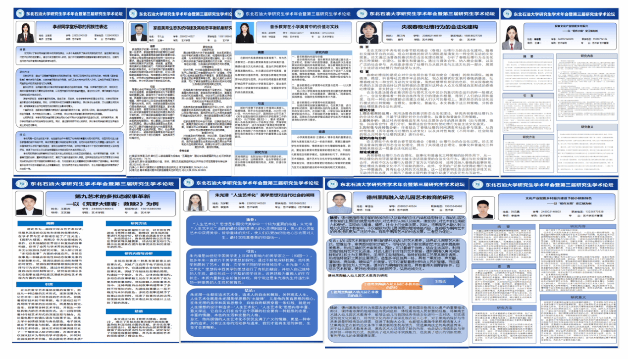 此次学术年会和论坛为研究生们提供了一个交流学术思想、展示研究成果的重要平台。参赛作品涵盖了多个学科领域,反映了我院研究生在学术研究上的深度和广度。