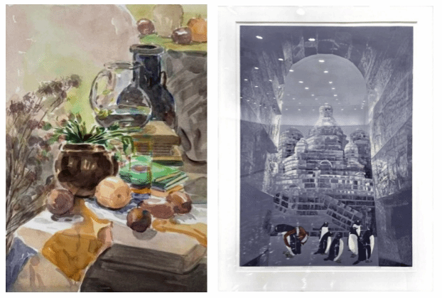 美术系此次采用了作品展示的方式,全系教师绘画书法作品31件,工艺美术作品10件,设计作品72件。业务汇报多样化的展示形式,全面反映教师的教学实践与创新能力。教师们的作品传递积极向上的正能量,每一件作品都凝聚着教师的智慧与汗水,展现了他们深厚的专业素养和扎实的基础教学能力。其中,国画作品以其笔墨韵味、意境深远赢得了广泛赞誉;油画作品则以色彩丰富、层次分明展现了艺术的魅力;芦苇画艺术、剪纸及衍纸艺术等民间传统技艺的融入,不仅丰富了展览的内容,也体现了教师对传统文化的传承与创新。