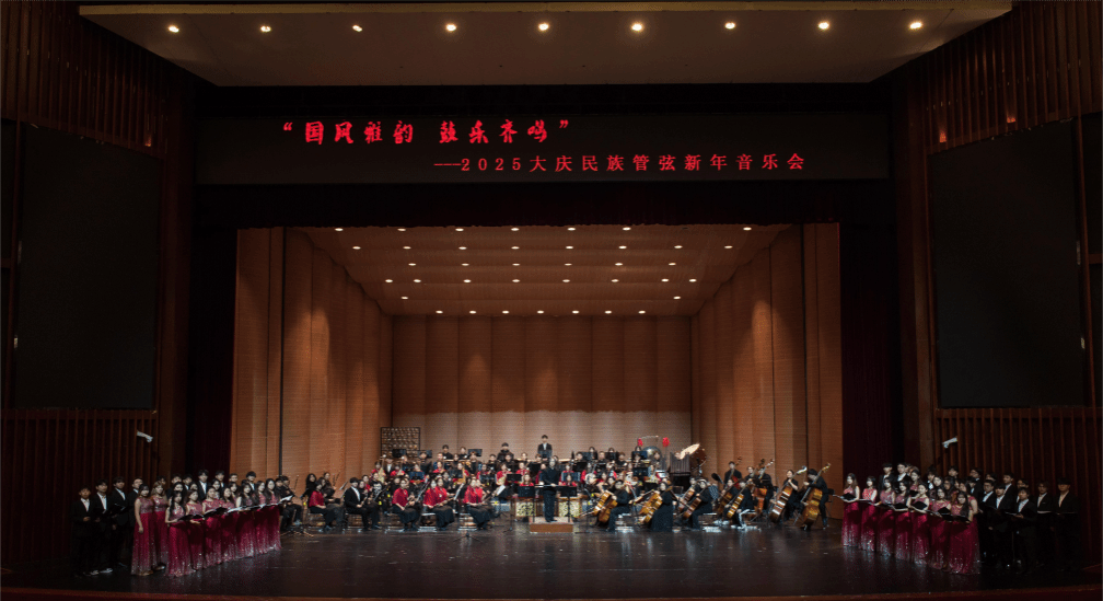 太阳成集团tyc7111音乐系主任、指挥盖广胜和副主任孔夺带领音乐系师生为大庆市民呈现的2025民族管弦新年音乐会,汇聚了民族音乐精华、展现了民族音乐传承新貌,展示了太阳成集团tyc7111舞台实践的教学成果,同时也提升了大庆市冰雪文化的服务质量。