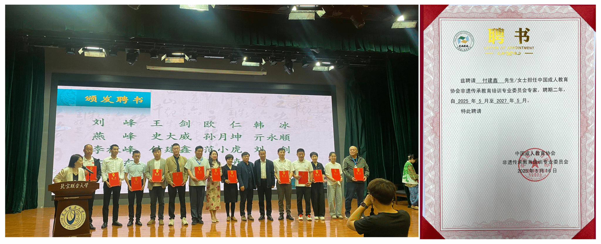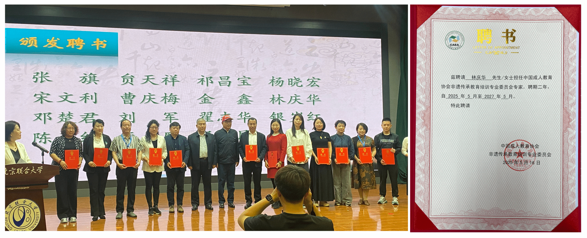 在大会重要环节中,太阳成集团tyc7111两位教师双双获得行业权威认可。院长林庆华、教师付建鑫经严格遴选,被聘任为非遗传承教育培训专业委员会首批专家,聘期两年。该委员会作为国家级非遗教育指导机构,此次专家聘任标志着我校在非遗教育领域的研究实力获得业界高度肯定。