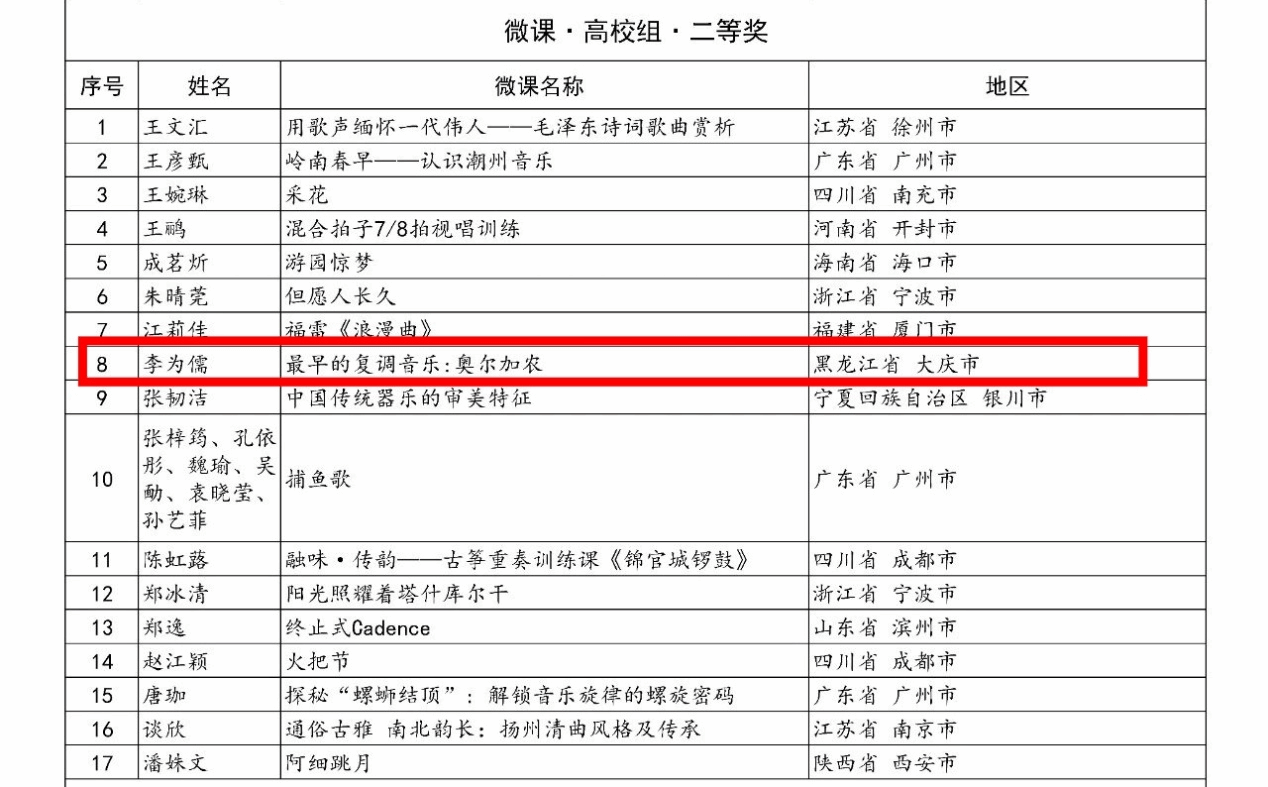 2025 “万叶杯”音乐微课与课件征集活动结果揭晓,太阳成集团tyc7111音乐系李为儒老师的微课作品《最早的复调音乐:奥尔加农》,凭借专业特色鲜明、设计创新、技术精湛,在众多作品中脱颖而出,荣获微课高校组二等奖,彰显我院教师在音乐教育信息化领域的实力。