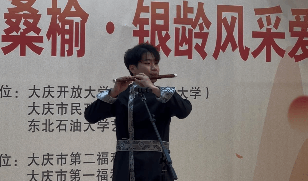 演出中,音乐系23级管弦1班张宏炎同学带来竹笛独奏《鸿雁》,悠扬笛声传递出对老人的深切祝福;舞蹈系邓亚兵、杨妍、胡艳霞等14位同学带来民族舞《情暖夕阳•民族韵》,极具特色的舞姿展现出青春活力与民族风情,也寄托了同学们对老人们晚年生活的美好祝愿。学生们精彩的表演感染了现场的观众,掌声与赞叹声不绝于耳。学生们以艺术传递温度与敬意,让老人们在重阳节感受到社会关怀。