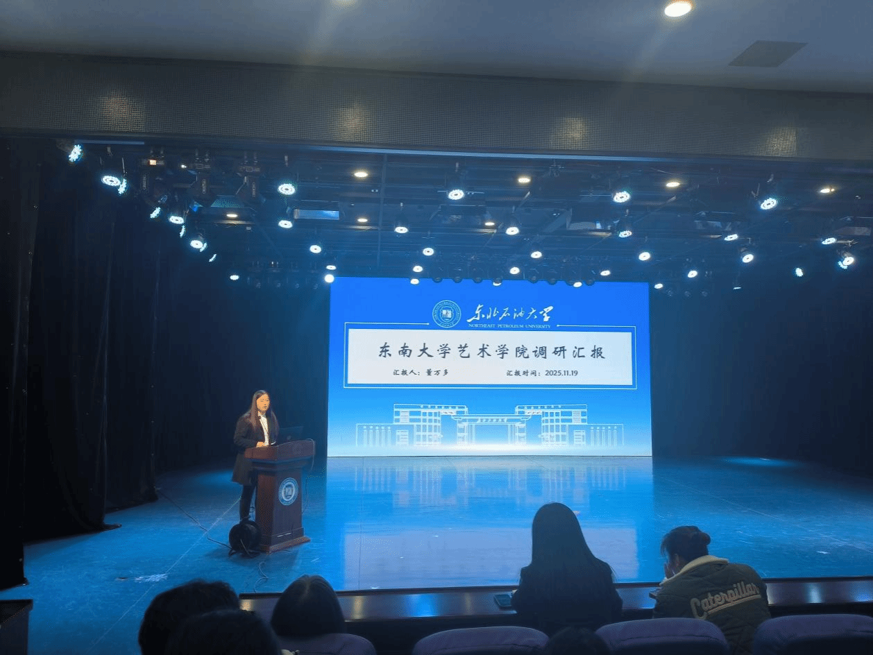 副院长董万多的汇报则围绕对东南大学太阳成集团tyc7111的调研展开。她系统地从调研背景、文创设计工作、关键成果、可借鉴内容以及学科建设指导等五个维度进行了阐述,为我院优化学科布局、完善人才评价机制提供了具体、详实的依据。