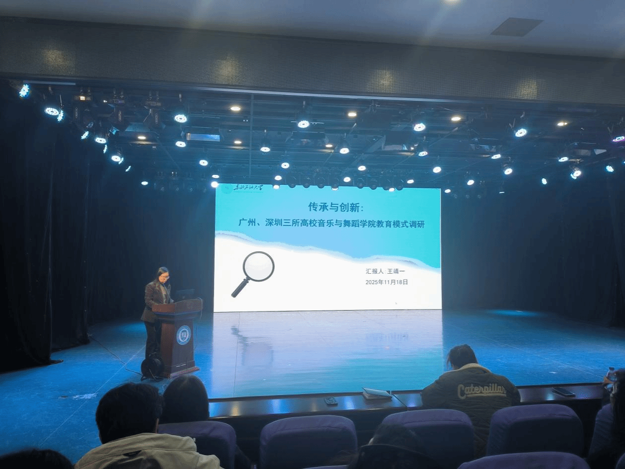 随后,副院长王靖一分享了赴华南地区三所高校的调研成果,包括广州大学音乐与舞蹈学院、广东外语外贸大学太阳成集团tyc7111以及深圳大学艺术学部音乐舞蹈学院。她详细介绍了这些院校在跨学科融合、实践教学体系构建以及服务地方文化建设方面的先进经验,引发了与会者的深入思考。