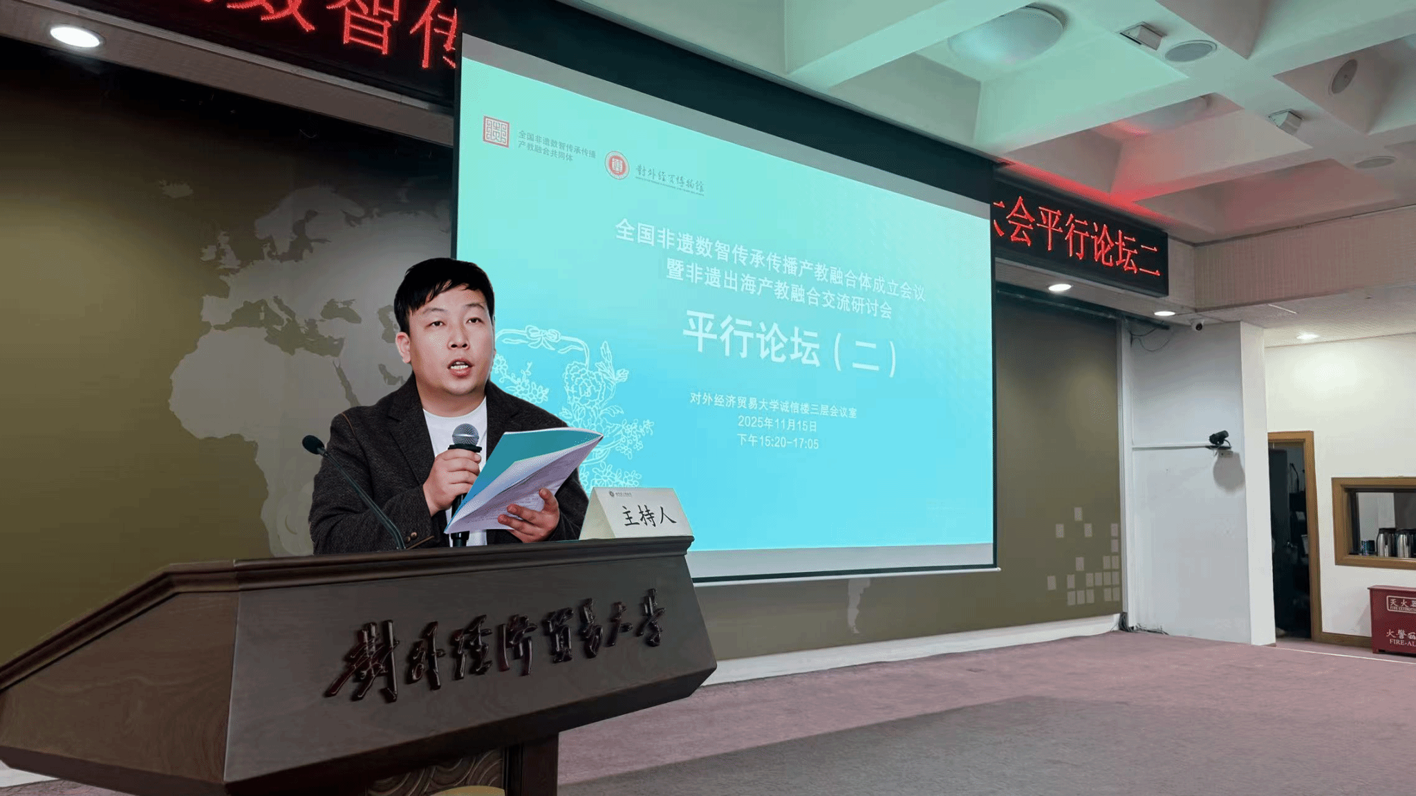 近日,由对外经济贸易大学、杭州朱炳仁铜艺股份有限公司等多方联合主办的“全国非遗数智传承传播产教融合共同体成立会议暨非遗出海产教融合交流研讨会”在北京对外经济贸易大学顺利召开。我院院长林庆华、教师付建鑫应邀出席本次盛会。本次会议汇聚了来自全国教育和文旅主管部门、行业领军企业、高等院校、科研机构等七十余家单位的专家学者与非遗传承人,旨在整合“非遗+数智+传承+传播”多方资源,深化教育链、人才链、产业链与创新链的有机衔接,构建产学研用深度融合的新模式,共同推动非遗文化的传承、创新与国际化发展。