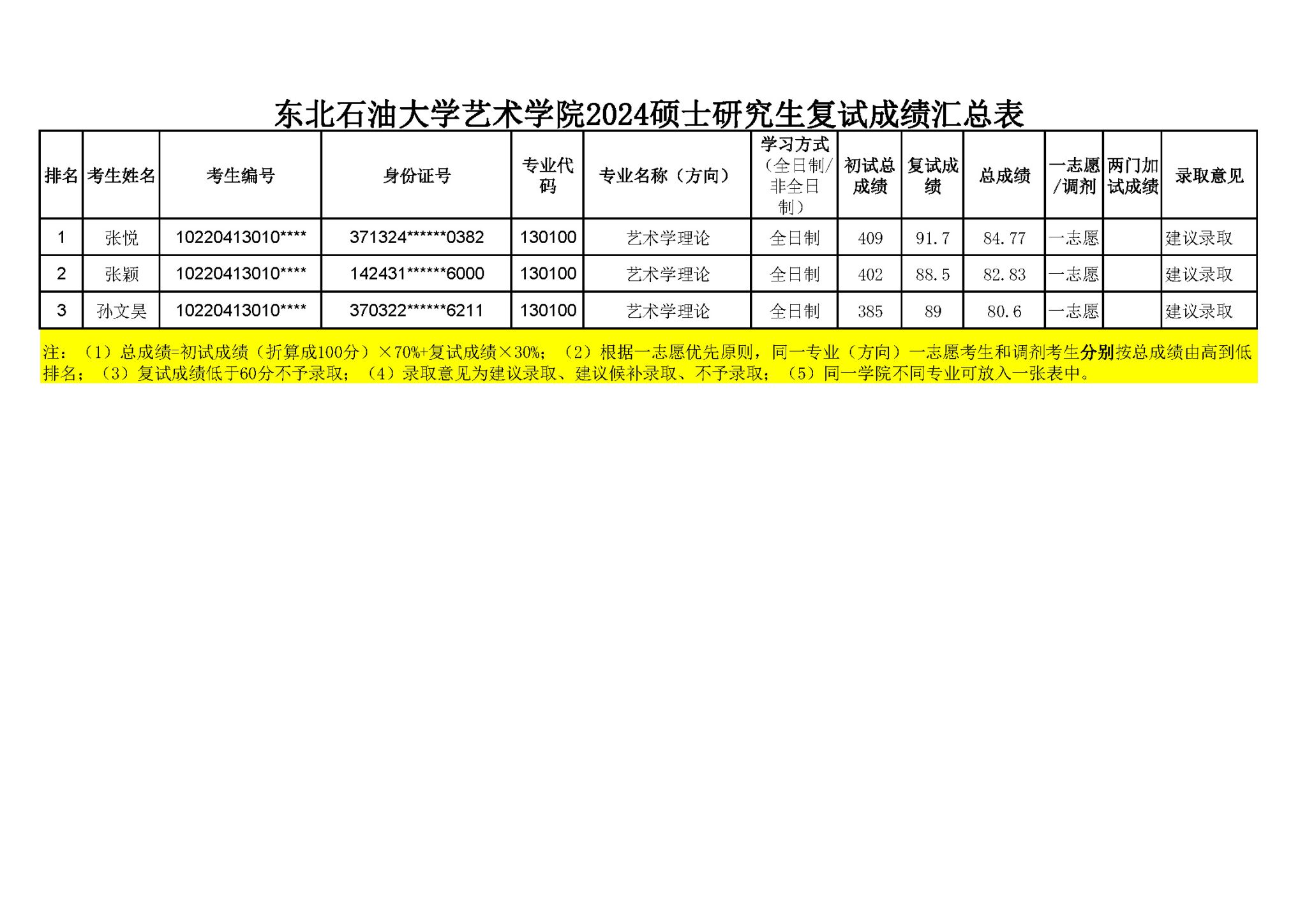 太阳成集团tyc71112024硕士研究生复试成绩汇总表
